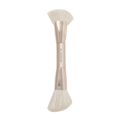 Dual-Ended Highlighter Brush: A vegan and cruelty-free brush designed to apply both crème and powder highlighter formulas with artistry-level precision.